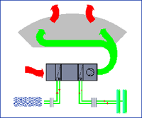 - Heat recovery using a recycling circuit.